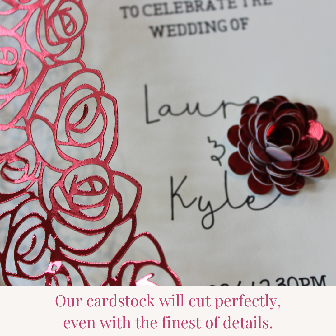 Red Mirror Cardstock is single sided, backside of mirror cardstock is white. Acid & lignin free, easy to score, cuts easily with any die cut machine, laser machine, or even by hand.